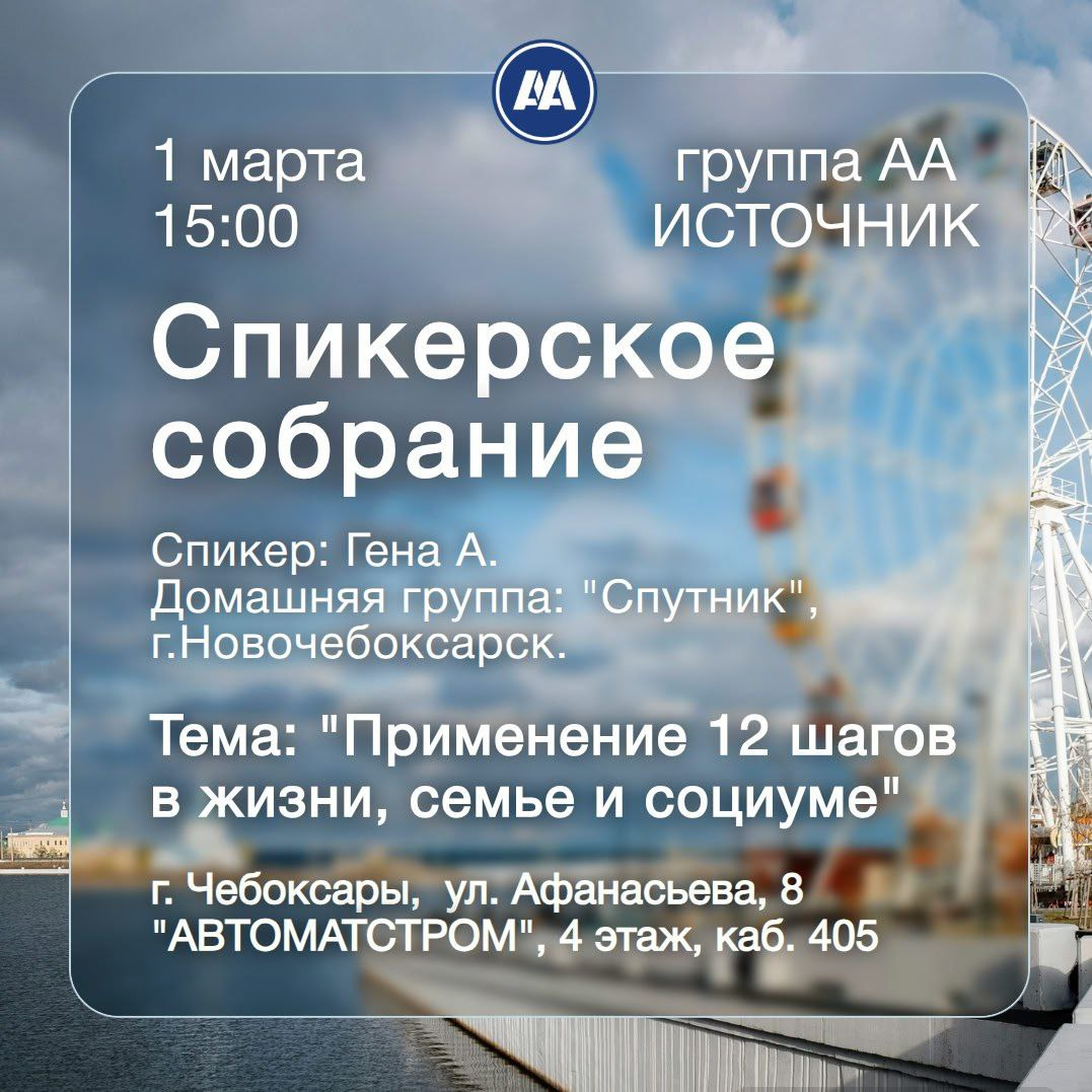 Группа АА «Источник» (г. Чебоксары) приглашает на открытое спикерское собрание.