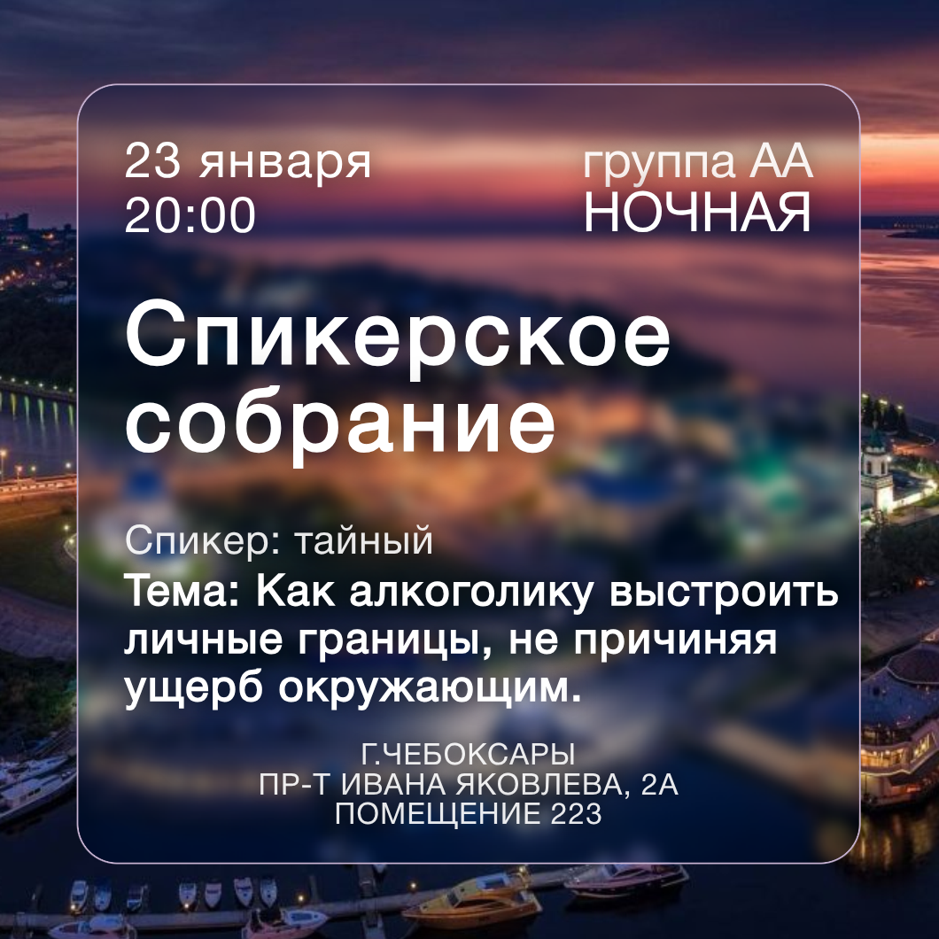 состоится спикерское собрание группы «Ночная» Анонимных Алкоголиков.
