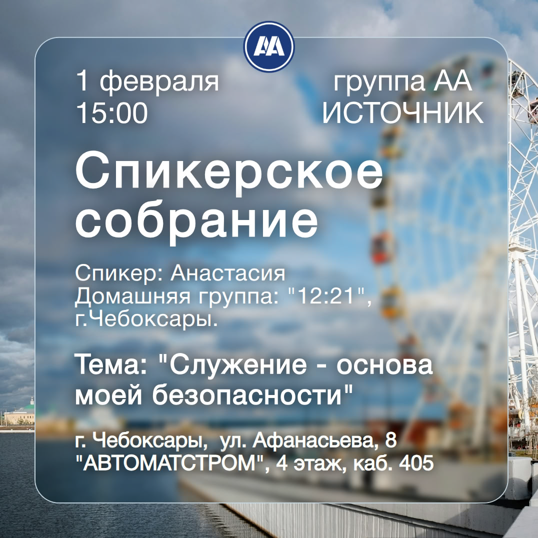 Группа АА «Источник» (г. Чебоксары) приглашает на открытое спикерское собрание.